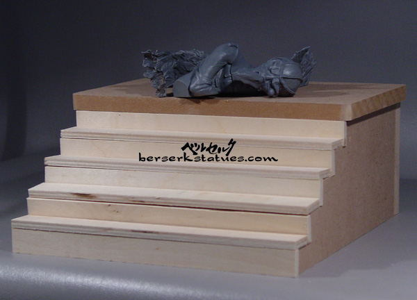 diorama. For the stairs, John cut the wood pieces and then plastered it to